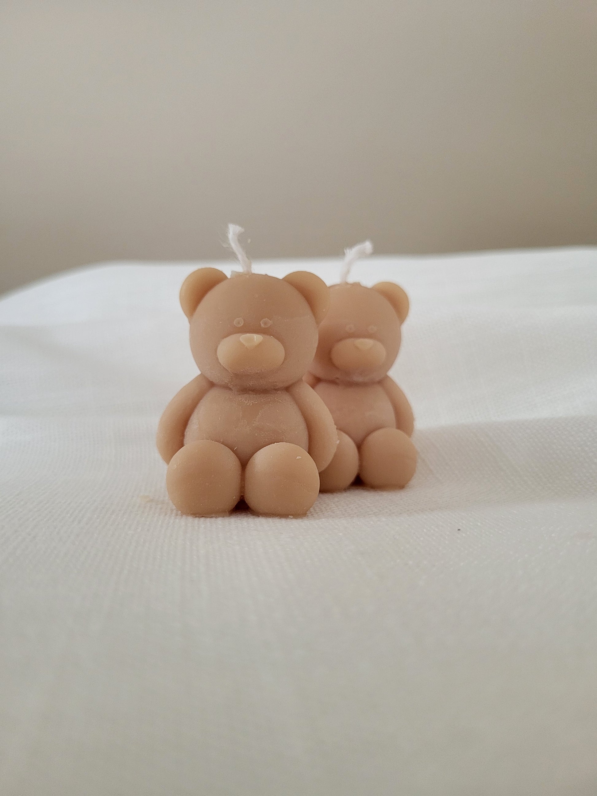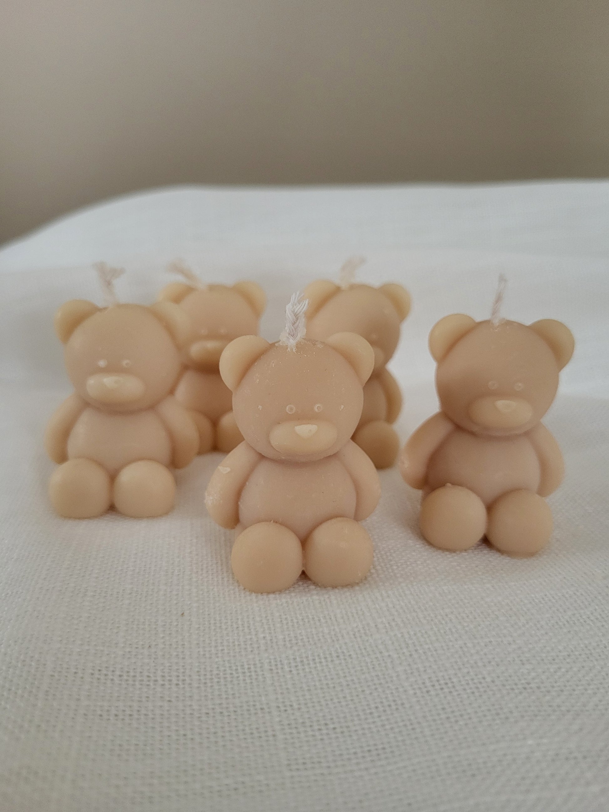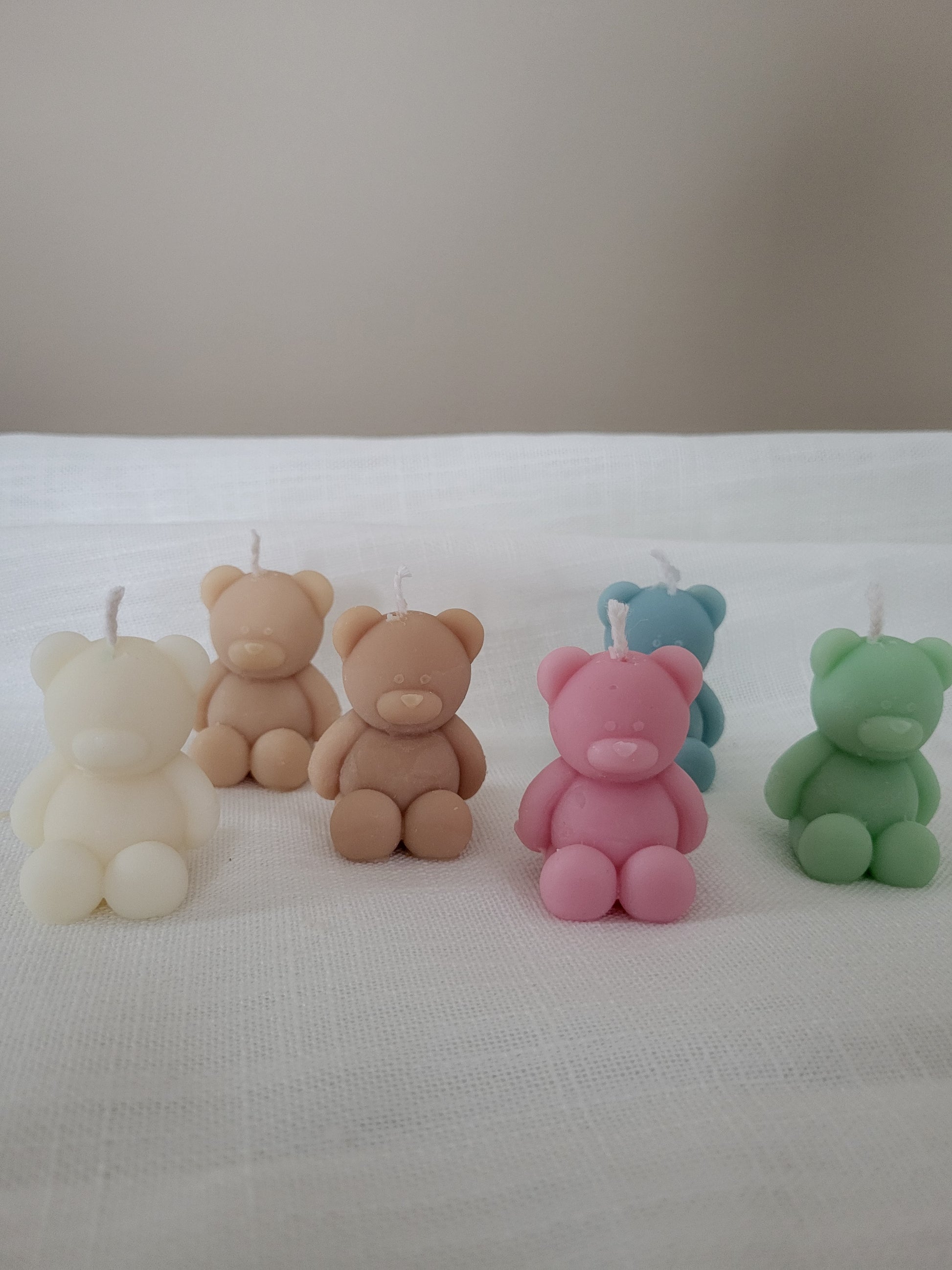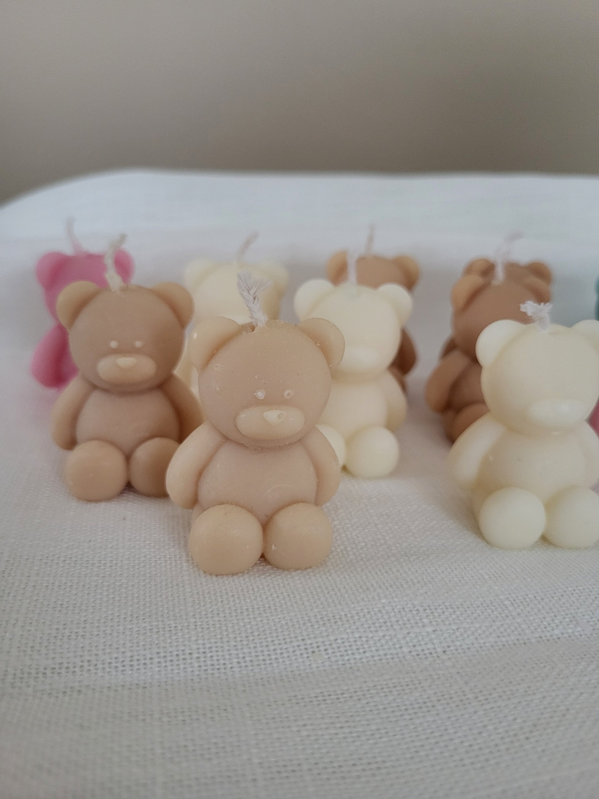 Bougie ourson / nounours. Fabriqué à la main en cire végétale, composé d'une mèche en coton. Cette petite bougie ourson existe en plusieurs couleurs.